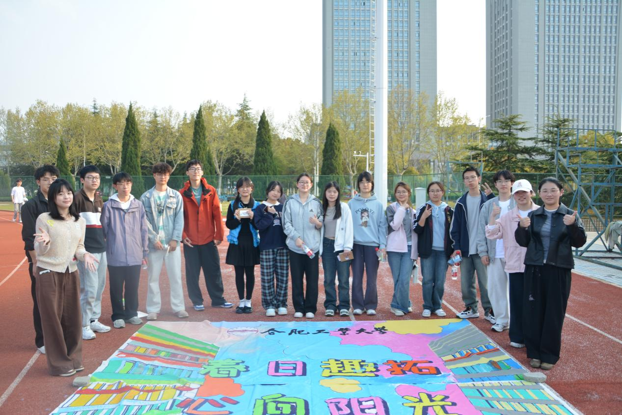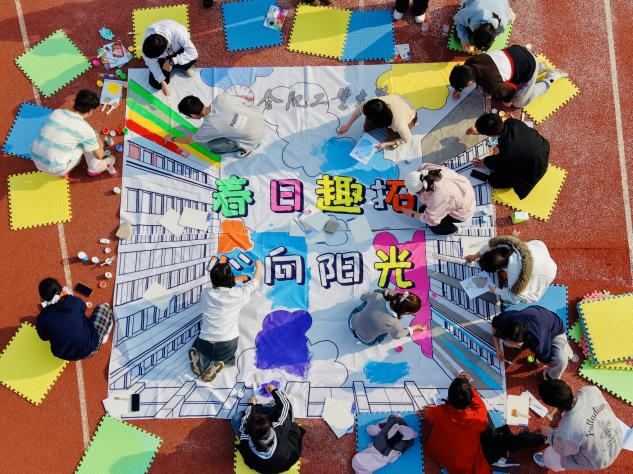 本次活动以春日户外素质拓展为主要形式。活动伊始,通过“桃花朵朵开”热身游戏打破隔阂、拉近距离,实现快速破冰。随后,成员分为两组,接力开展单人跳绳、背靠背运气球、两人三足、轨道运球等趣味团体项目,大家在协作配合中增进默契,在欢声笑语中释放压力,充分展现出蓬勃的青春活力与昂扬的团队精神。活动尾声,全体成员共同参与创意涂鸦,原本素净的黑白画布在众人笔下渐次铺展,最终绘成一幅绚烂多彩的春日画卷。