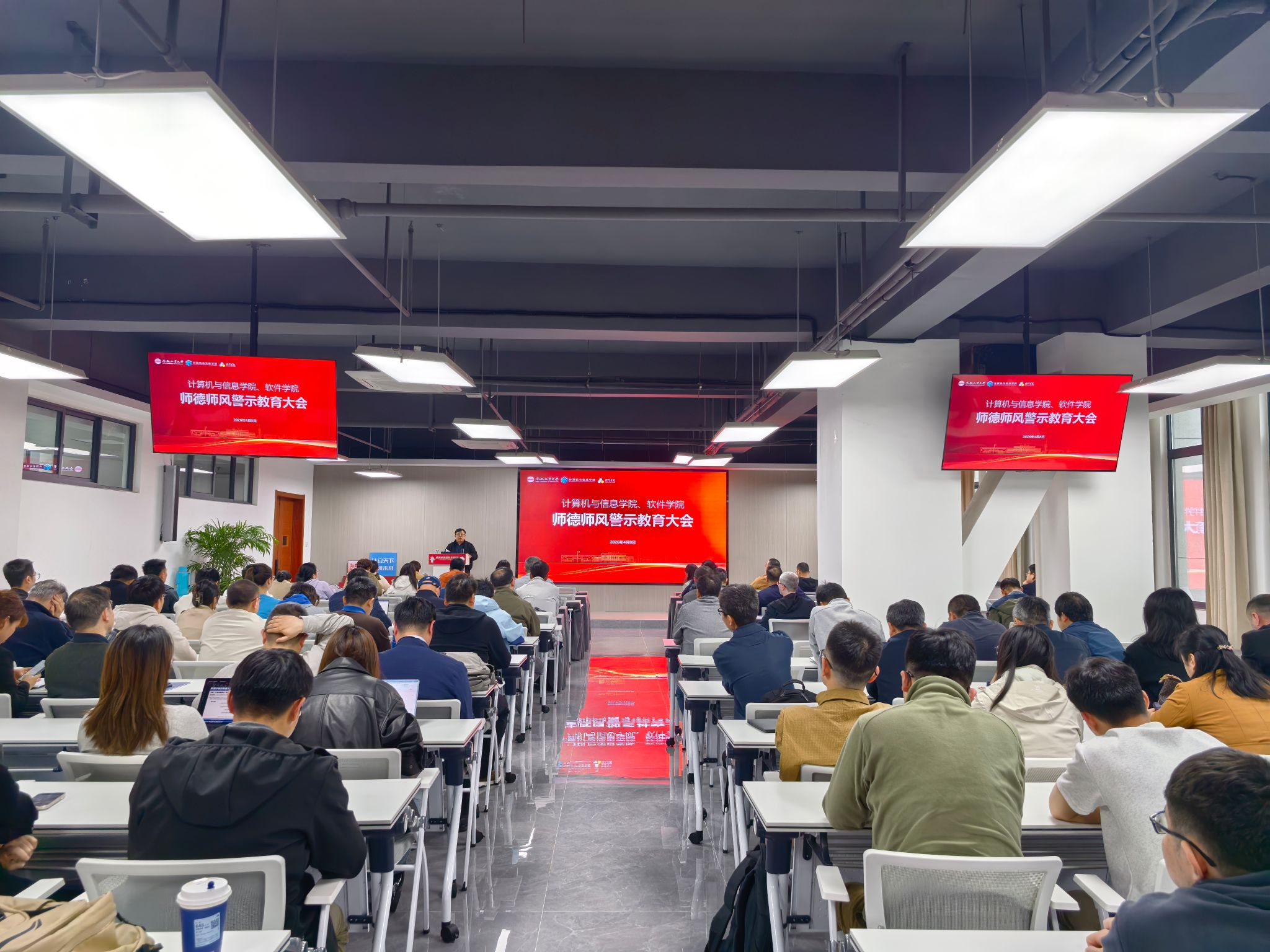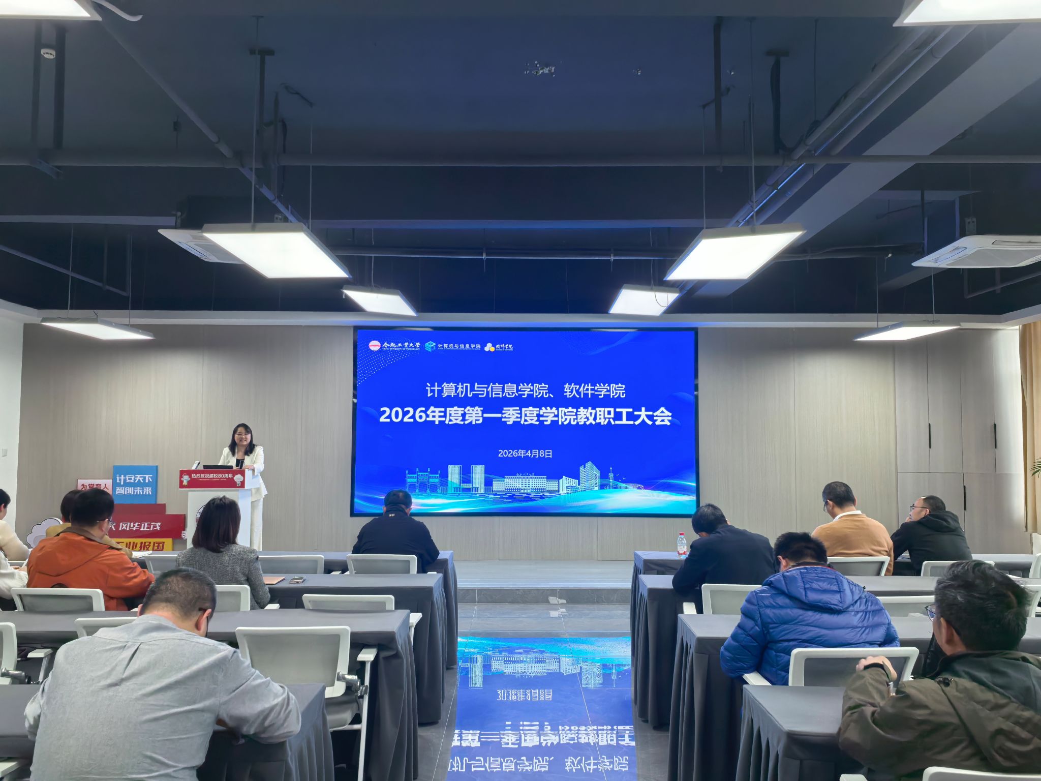 4月8日下午,学院在科教楼B501报告厅召开2026年第一季度全体教职工大会。院领导班子成员及全体教职工参加会议。