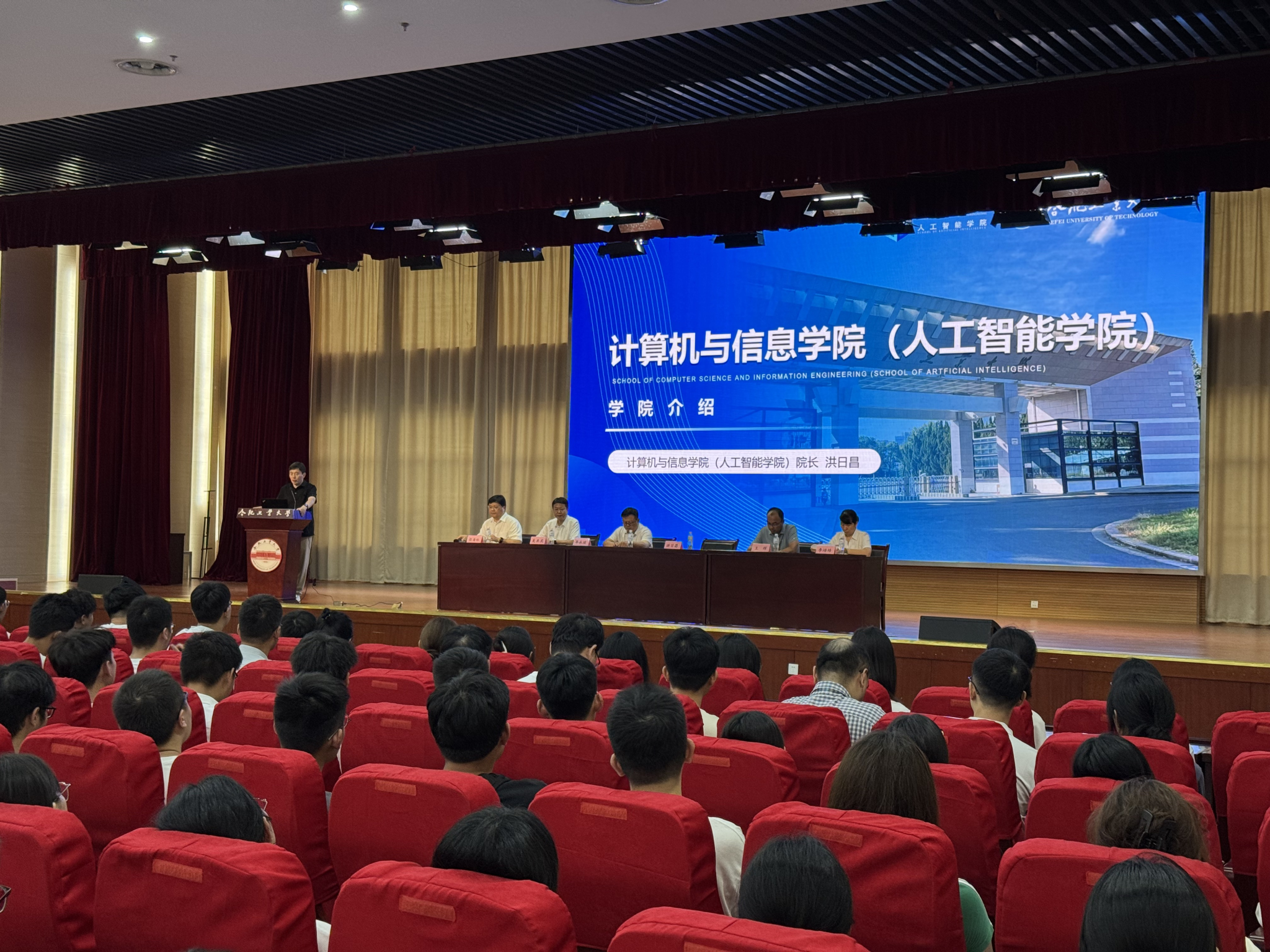 2025年8月30日下午,计算机与信息学院(人工智能学院)2025级本科新生见面会暨开学典礼在翡翠湖校区科教楼A座二楼报告厅举行。学院党委书记年永琪,校长助理、院长洪日昌、党委副书记兼纪委书记张海林、各系所负责老师、新生班主任及全体辅导员、马克思学院代理班主任参加活动,与2025级623名本科新生共同开启大学新征程。
