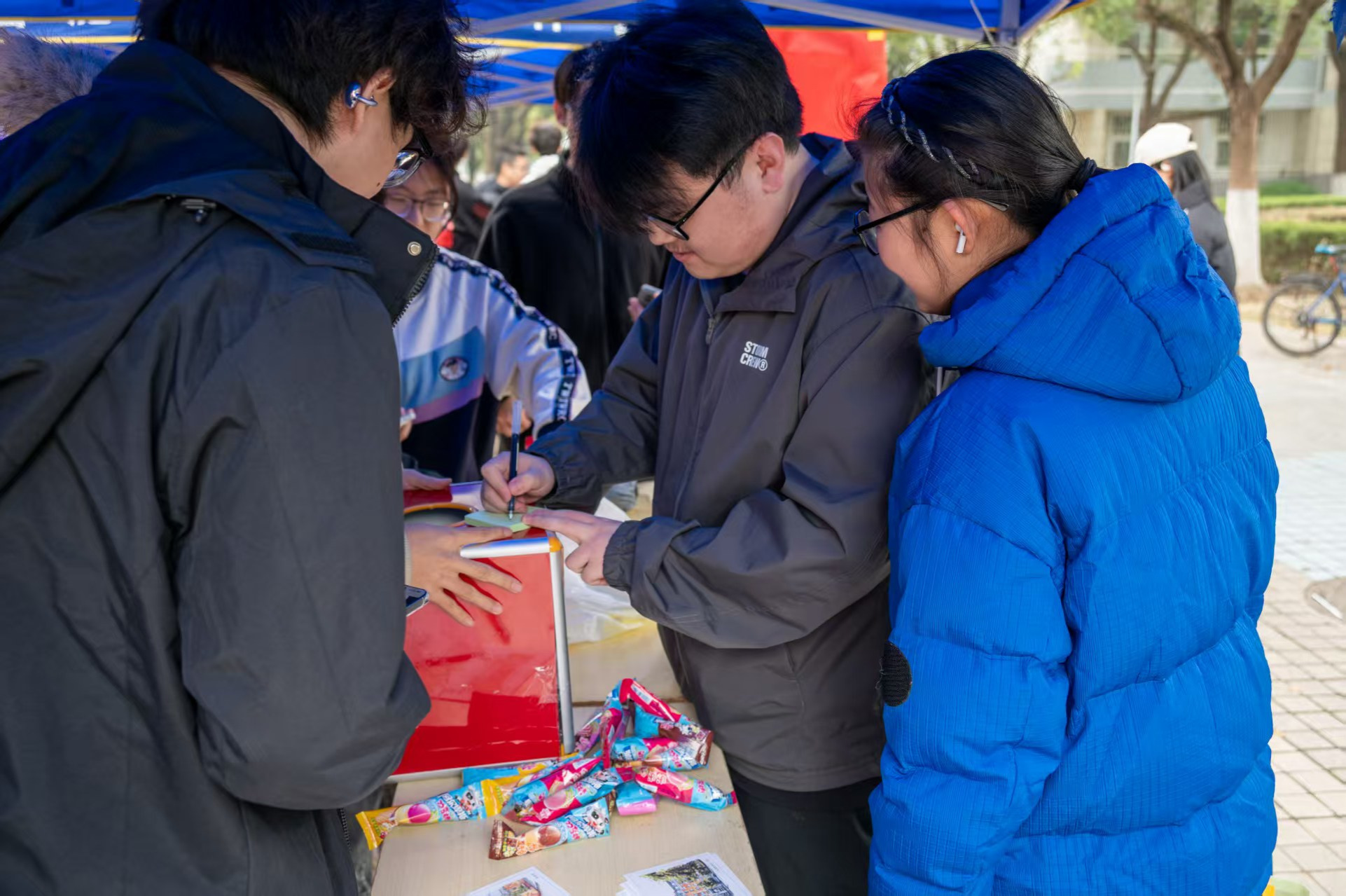 本次活动聚焦学生日常消费场景,设置了“权益知识问答”和“权益留言墙”两大服务区域,以趣味化、实用化的形式普及消费者权益、网络隐私保护、宿舍安全规范等内容。在问答区,同学们通过案例解读、情景判断等方式,深入了解常见消费陷阱及应对策略,提升了理性消费与依法维权的意识。留言墙区域则吸引大家积极分享自身消费经验和建议,形成良好的互助氛围,为更多同学提供了实用的生活参考。
