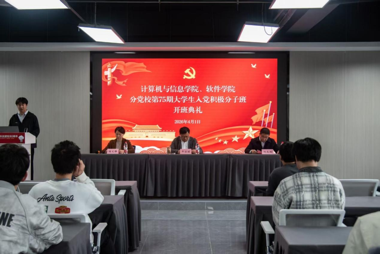 4月1日下午,计算机与信息学院、软件学院分党校第75期大学生入党积极分子班开班典礼暨第一次专题党课在翡翠科教楼B座501举行,学院党委、分党校相关负责同志及培训班全体学员参加典礼。