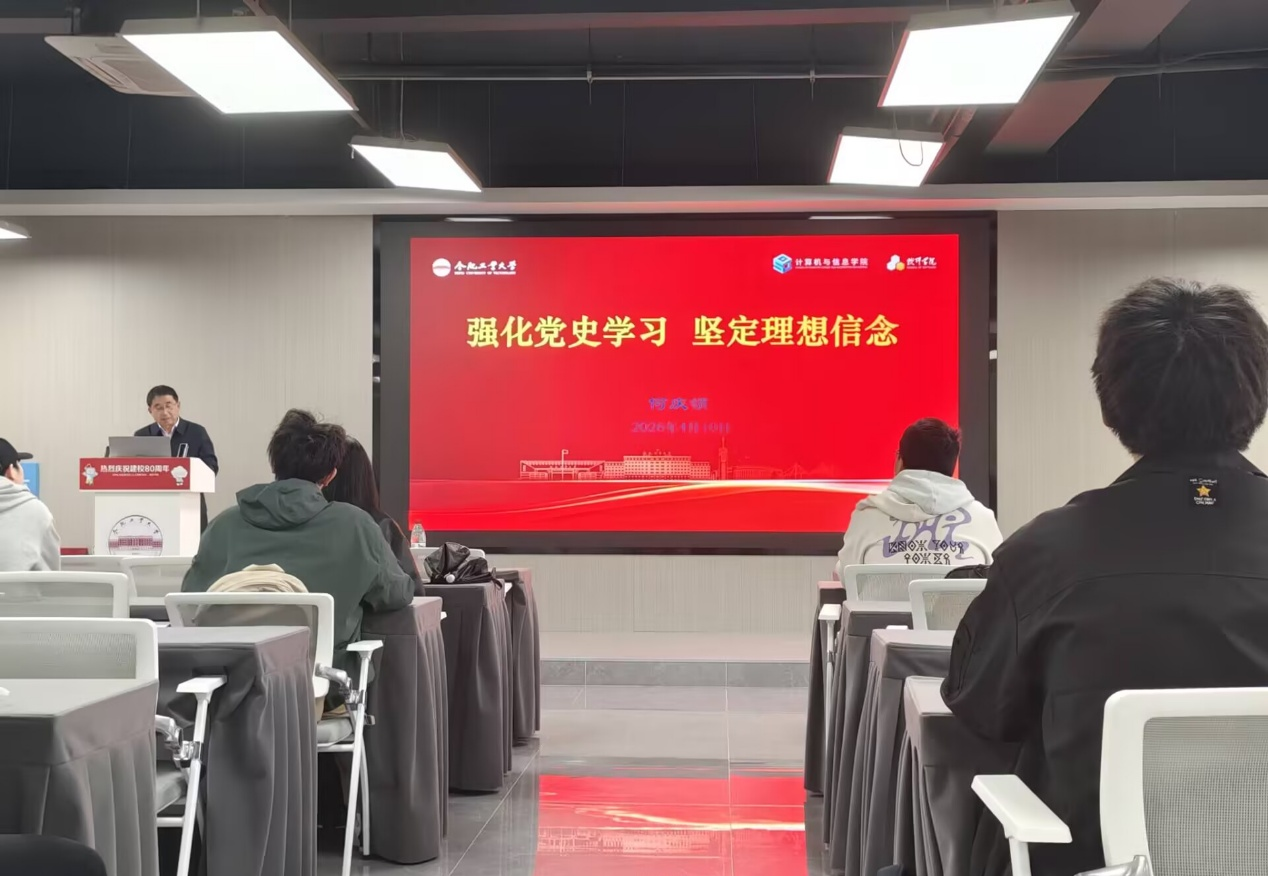 4月10日上午,计算机与信息学院、软件学院分党校第75期大学生入党积极分子班第三次集中授课在翡翠科教楼B座501开展,学院正处级组织员何庆领以“强化党史学习,坚定理想信念”为题主讲党课,培训班全体学员参加学习。