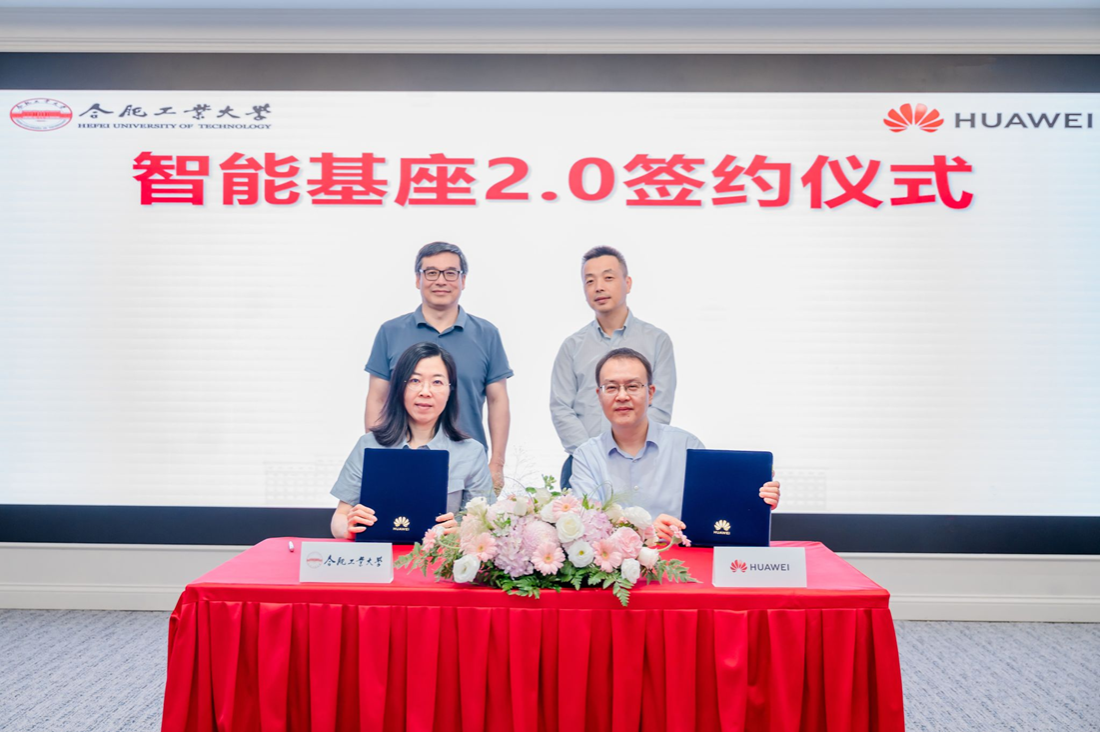 On the afternoon of August 13, the signing ceremony of Hefei University of Technology - Huawei "Intelligent Base" Industry-Education Integration and Collaborative Education Base 2.0 was grandly held in the Lecture Hall of Huang Danian Tea House in Hefei. Zhu Lifeng, Director of Huawei Technologies Co., Ltd. Shanghai Research Institute, Xiong Zhangliang, Minister of the University System Department of Shanghai Research Institute, Cao Xinfang, Minister of the University and Scientific Research Talent Development Department, and 7 other main person in charge of the project attended the activity. Ding Lijian, Vice President of Hefei University of Technology, Kang Yu, Vice President, Zhang Li, Director of the Academic Affairs Office, Xu Huajian, Vice Director of the Scientific Research Institute, Li Peipei, Vice Dean of the School of Computer Science and Information Engineering, and directors of various departments and teacher representatives attended the ceremony. The signing ceremony was presided over by Yang Yindong, Technical Cooperation Manager of the University System Department of Huawei Shanghai Research Institute.